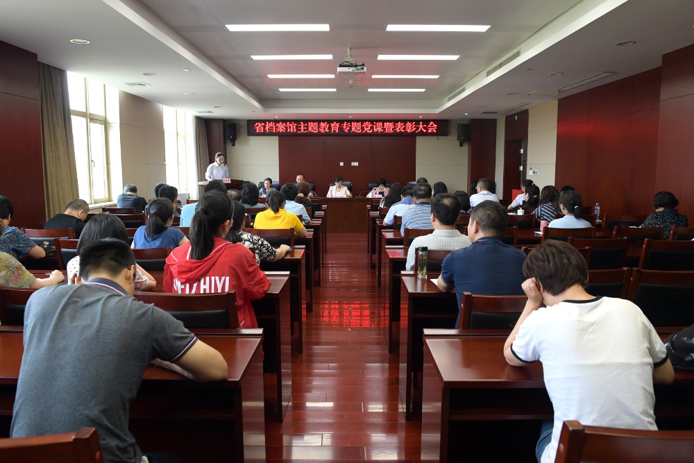 7月16日,省档案馆召开“不忘初心、牢记使命”主题教育专题党课暨2019年度优秀党员表彰大会。馆党组书记、馆长方维华在会上为全体干部职工讲授专题党课,馆党组成员、副馆长谭向文主持会议,馆党组成员、副馆长谭荣鹏宣读表彰决定,副巡视员毛海帆出席会议。省委主题教育第一巡回指导组廖志刚副组长、饶州平同志到会指导。
